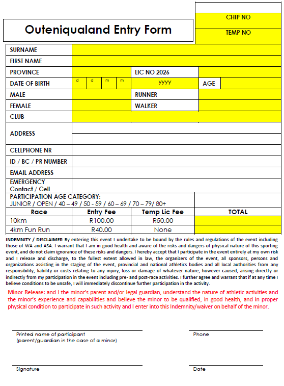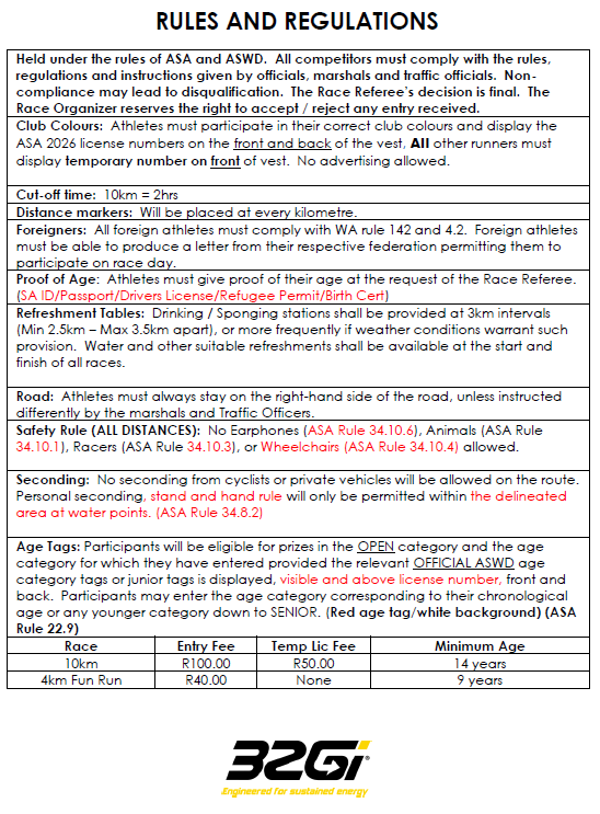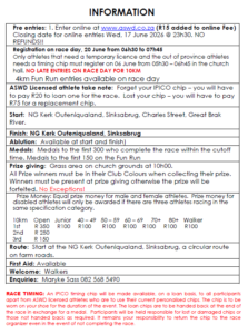 Closing date for online entries Wed, 17 June 2026 @ 23h30. NO REFUNDS!!