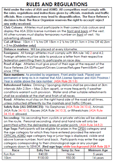 Start 10km: Palm Tyres @ 08h00