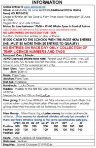 Drop of Entries at Top Gear & Palm Tyres close Wednesday 25 June @17h00