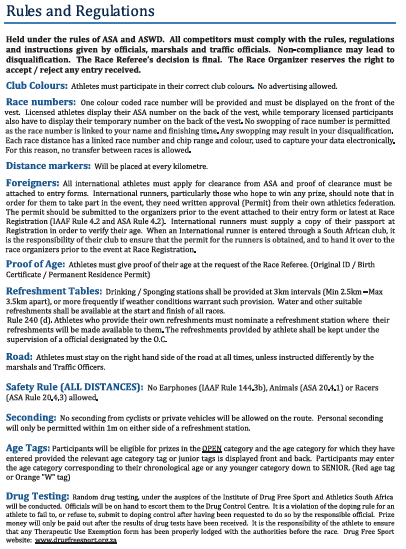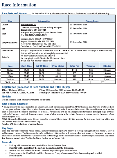 Late Entries: Friday 23 September 2016 between 14:00 – 21:00 – NO ENTRIES ON RACE DAY (Apart from Fun Run)
