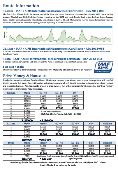 Entries: Online entries till 21 September @ www.aswd.co.za @ 12pm