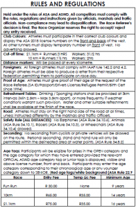 Prize giving : Athletes are responsible to collect their own prize money or make an alternative written arrangement with the Event Organizer. Failing which prize money is forfeited. (ASA Rule 2.10)