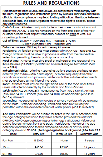 Race day entries will attract a R20 premium to advertised rates