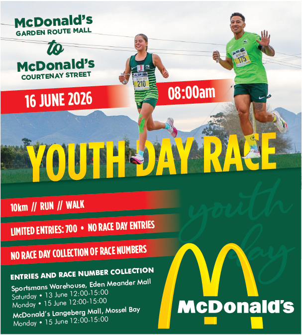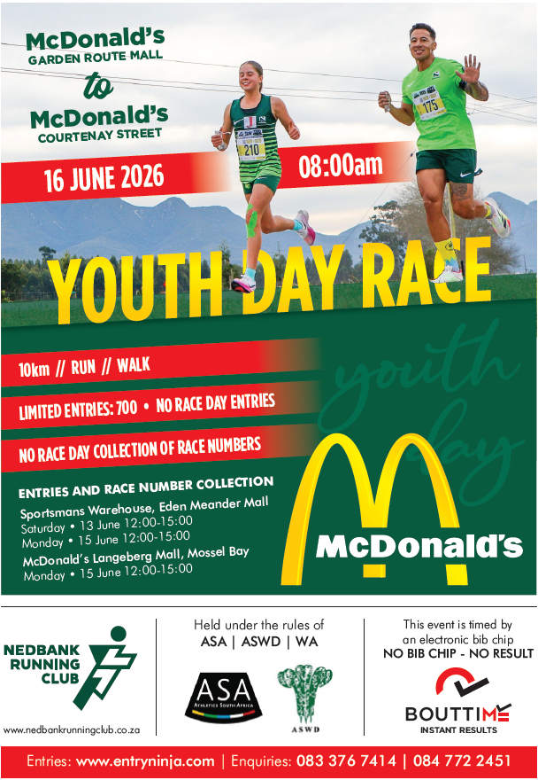 START : 10km start 08:00am at McDonalds Garden Route mall and Finish at McDonalds Courtenay Street